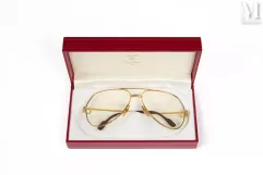 - een bril van het merk Cartier. Dit item van verguld en houten veren, gesigneerd Cartier Paris, wordt verkocht voor €1.400, na een schatting tussen €150 en €200;