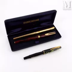- Montblanc Stylo Plume Meisterstuck: Een verfijnde vulpen van verguld metaal en zwart bakeliet, met een 18-karaats gouden penpunt. Dit emblematische Montblanc model, gesigneerd en gepresenteerd in zijn originele doos met een blauwzwarte inktvulling, werd verkocht voor 280 euro.
