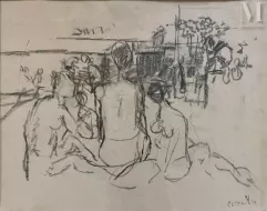 - "Baigneuses dans un paysage", door Henri FANTIN-LATOUR, een houtskooltekening met wit krijthoogtepunten op pastelblauw papier van 52 x 67 cm. Het werk is geannoteerd "Fantin" in de linker benedenhoek en heeft vouwen. De tekening is verkocht voor €4.500;