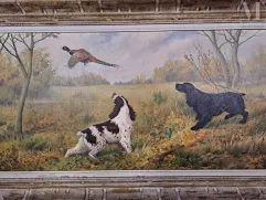 Een barbethond die een specht als trofee houdt, met afmetingen van 86 x 80 cm, werd verkocht voor 14.500 euro;