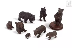 Twee genaturaliseerde berenkoppen gemonteerd op wapenschilden. Deze stukken, geschat op 150 tot 200 euro, zijn verkocht voor 600 euro in 2021.