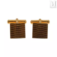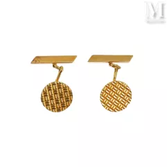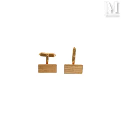 - Een paar 18 karaat geelgouden manchetknopen, gevormd uit afneembare dubbele gecanneleerde cilinders. De set draagt de VCA signatuur voor Van Cleef & Arpels. Met een brutogewicht van 10,2 gram worden deze manchetknopen verkocht voor €1.200 na een schatting van tussen de €300 en €400.