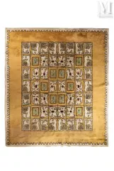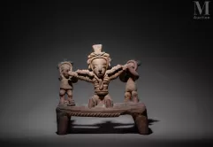 - Een ceremoniële trommel uit de precolumbiaanse kunst, met een rijke versiering van ideogrammen en motieven, geschat op €10.000-15.000, verkocht voor €9.000 in april 2023;
