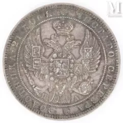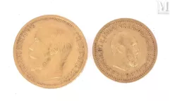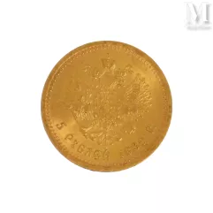 Een munt van 25 roebel of 2 1/2 imperial (50 frank), geslagen in Sint-Petersburg in 1896 tijdens het bewind van Nicolaas II, verkocht voor €120.000 tegen een schatting van €80.000. Op de voorkant staat links het naakte hoofd van Nicolaas II en op de achterkant de dubbelkoppige adelaar afgebeeld en gekroond, met de waarde en datum erboven en eronder.