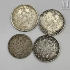 - Keizerrijk Rusland - Nicolaas I (1825-1855), 3 roebel van 1830 verkocht voor €1.500, met de gekroonde dubbelkoppige adelaar op de voorzijde en de staatsinscripties op de keerzijde. Deze platina munt met een gewicht van 10,03 gram komt uit een Catalogized Sale van 24.05.1987;