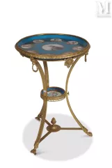 - Eén van de mooiste stukken is een uitzonderlijk paar koninklijke vazen van porselein uit Sèvres, versierd met portretten van koning Louis-Philippe en koningin Marie-Amélie. Deze tweede-formaat vazen in de vorm van een "Etruskische karaf" zijn gemaakt van hard porselein, met een blauwe basis versierd met een half decor van platina bloemen. De vuurvergulde handvaten aan de zijkant zijn gekruld en versierd met palmetten en acanthusbladeren. De portretten staan in ovale reserves. Elke vaas is rechtsonder gesigneerd "Moriot". Deze vazen, die rusten op een vierkante verguld bronzen voet, werden geschat op €35.000 tot €45.000 en werden verkocht voor €48.000;