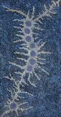 - Een acryl op doek van schilderes Lilly Campbell Napangardi, van de Warlpiri aboriginal groep. Dit werk werd geschat op €2.000 tot €2.500 en verkocht voor €1.800;